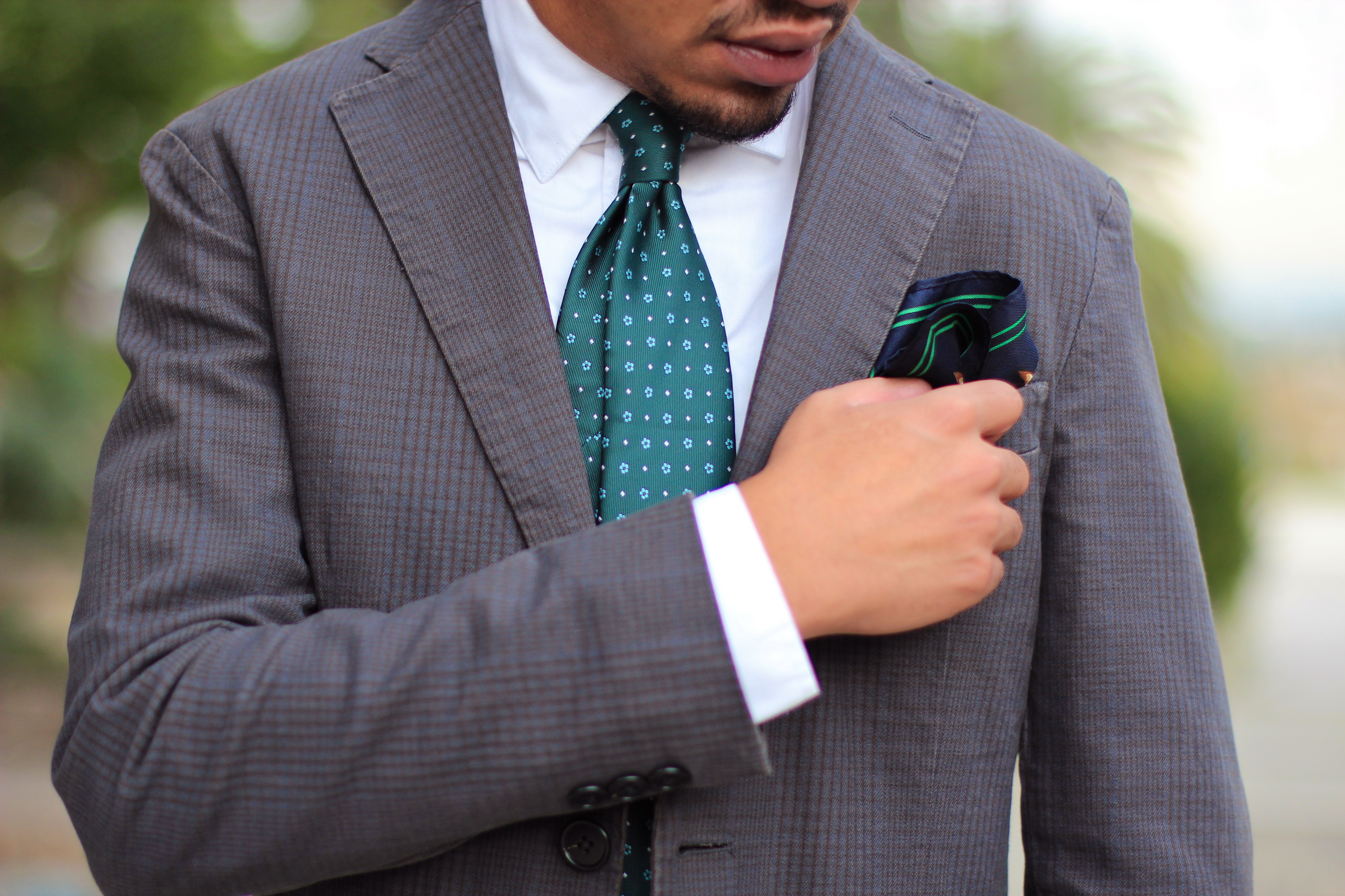 Pocket square from H&M, Grey patterned blazer from Uniqlo