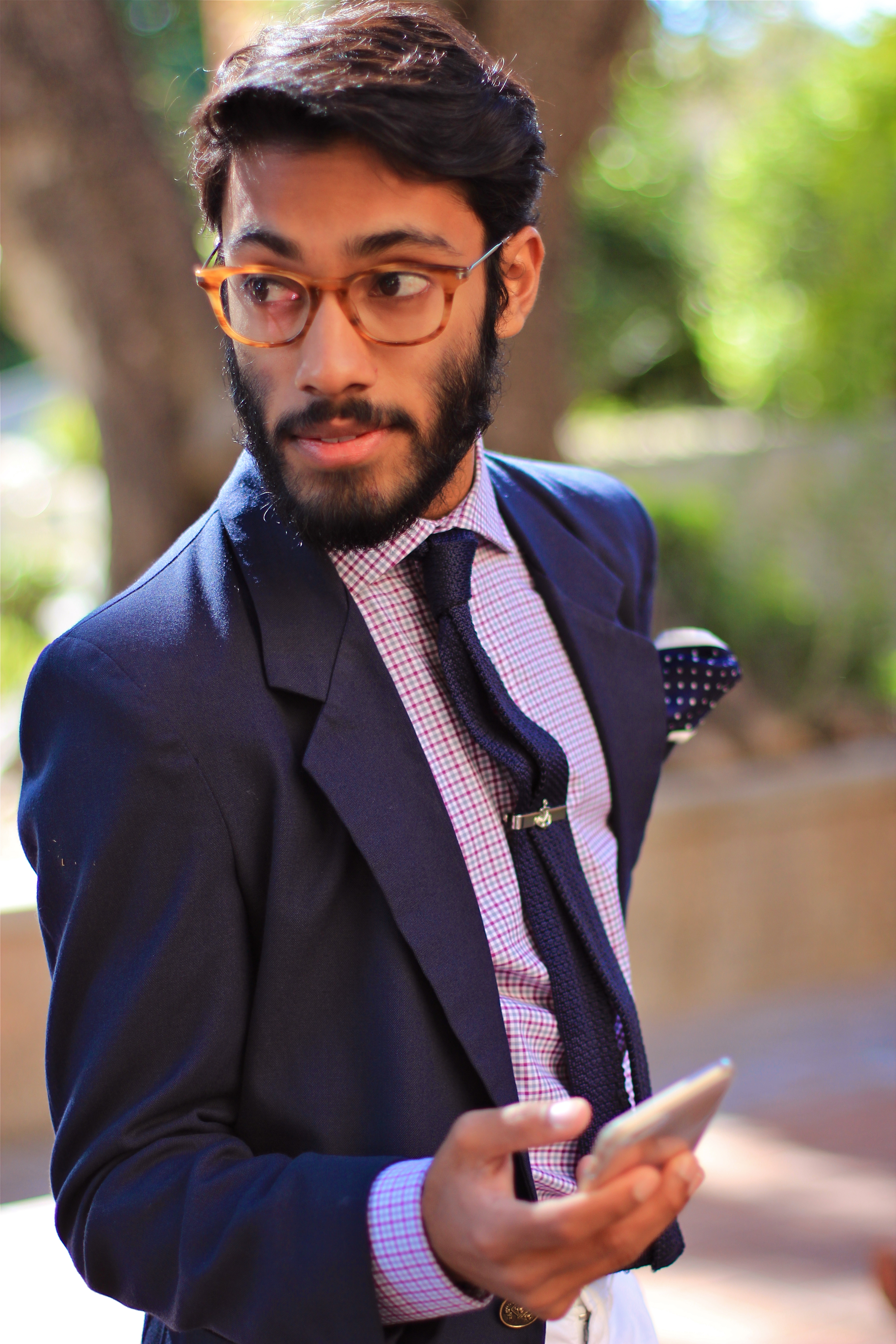 The width of your tie bar is just as important as its placement. Your tie bar should have a shorter width than your tie. Otherwise, you’ll have an awkward piece of metal that looks like it pierced your tie all the way through. If you prefer having your ties skinny, I would suggest having a very minimalistic tie bar so that you don’t run into the problem mentioned in the above statement. Check out the following picture; Raj’s tie bar doesn’t meet or exceed the width of his knit tie!