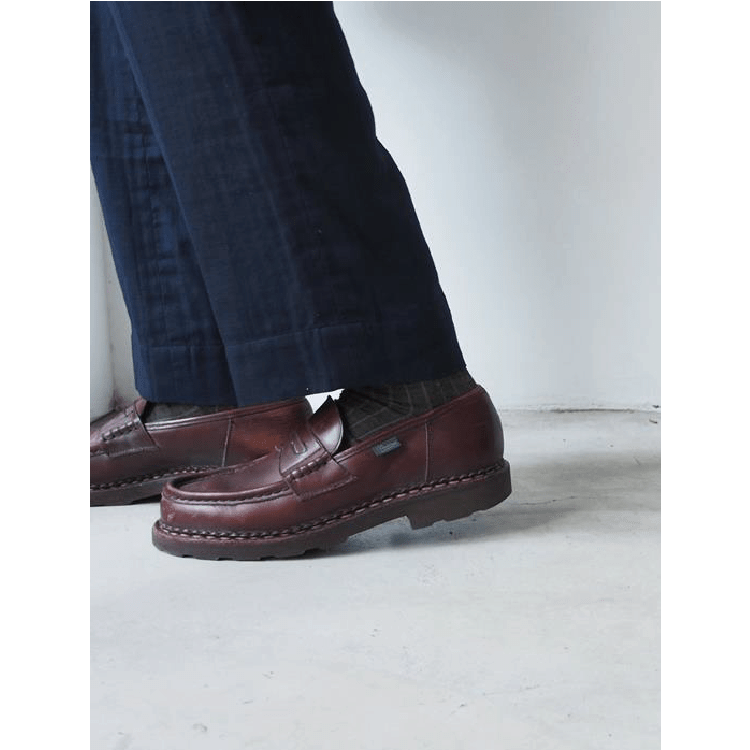 There is just something charming about these rugged French made Tyrolean shoes (specifically the Michael model). The round toe is comforting rather than snubby. The rugged sole provides character and utility; clunky in a good way! The two eyelet lacing is delightfully minimal for a shoe that is quite bold. Perhaps more importantly (for my weird menswear logic), Paraboots have that moc-esque toe treatment that seems to be the common detail among almost all my existing shoes: my wallabees, my tassels, my pennys, my blucher mocs, and my indy boots; I find it quite cool and slouchy, sort of an anti plain or captoe. Overall, the Paraboot Michael is a lace-up shoe that is quite different than most #menswear footwear, especially when compared to the shoes in my existing closet.