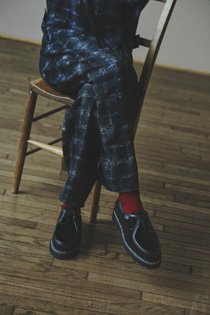 I guess you could say it’s a bit punk in that regard, whether it’s in the “Forced Versatility” of wearing something incongruous with “business wear” or if its just of what it looks like. I’ve never been a huge fan of Doc Martens or Solovairs (mostly due to their shape), but I like the idea of them as a punk meets workwear staple; it’s cool to see people reference it in their own fits (primarily on Tiktok). Obviously this has some parallels to the rugged sole loafer movement that we see from Blackstock and Weber and F.E Castleberry. My friend Jason was always notable to me in how he wore lug soled Weejuns with his take on Thom Browne-meets-Sexton sensibilities.