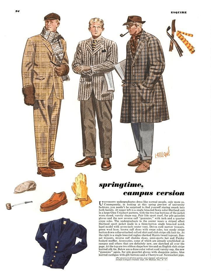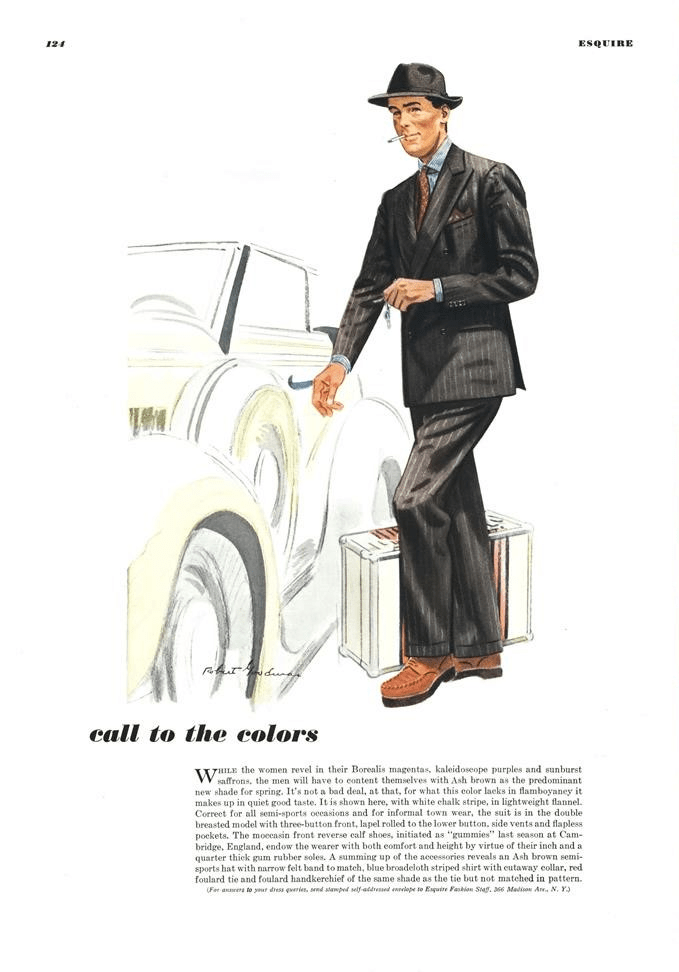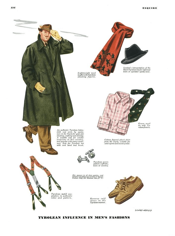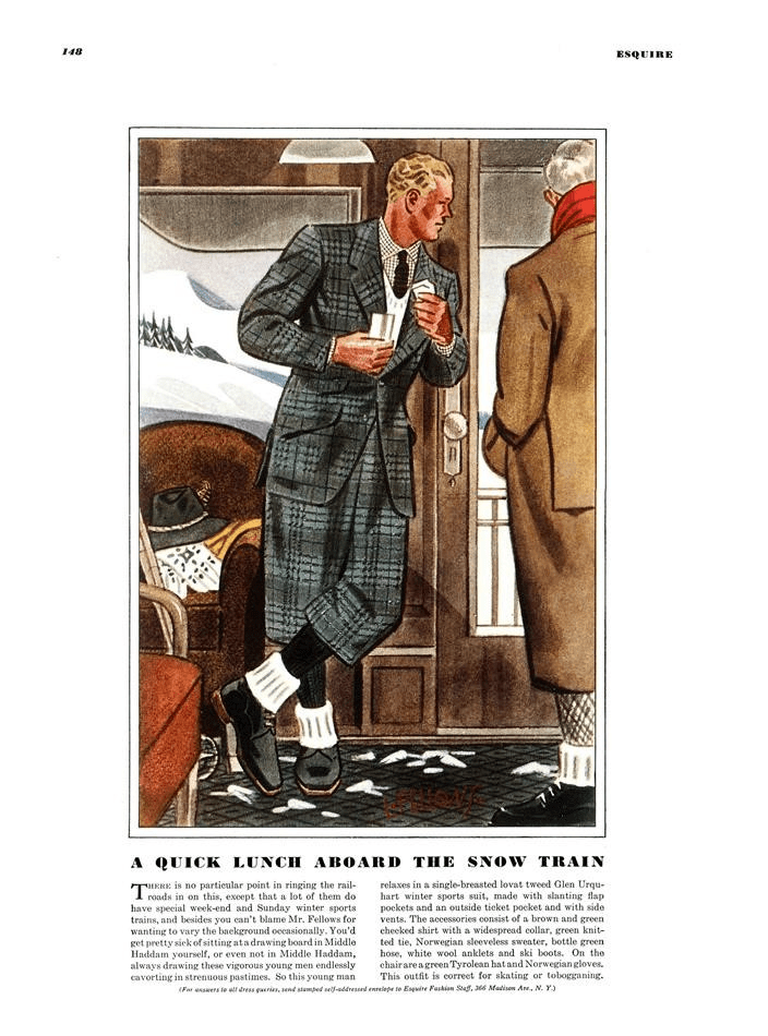 Thankfully there was a bit of reference to be found in old Esquire Man illustrations, as well as in old European menswear advertisements; the history of Paraboot is fascinating to help get into the midset. Overall, chunky soled shoes had their niche moment a few times during the Golden Era, whether they were crepe soled derbies or were actual Tyrolean shoes. It’s nice to know that guys were into the juxtaposition between something “rugged” and the clean lines of tailoring, even if at its root the decision to wear it is that “it’s simply not a traditional lace up or derby” It’s still niche, but I new that my interest in the Paraboot was more than just a fetish for the design— it could actually be worn as a look. As I’ve recognized how “practical” my menswear can be, it’s nice to take steps in a way that makes sense; workshirts and hearty fabrics are one thing, but shoes can certainly help be pointed in that aesthetic.