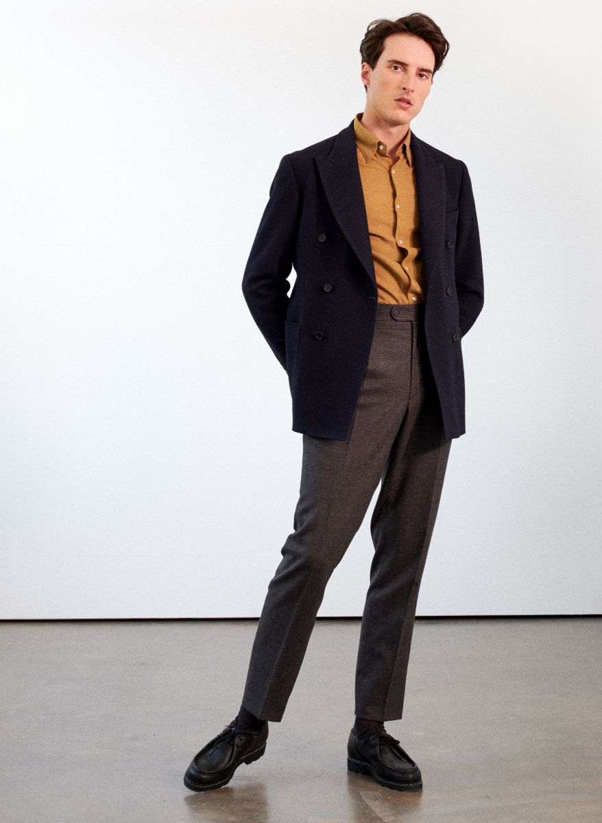 Obviously, the Paraboot (and Barbour jacket) were not the only things that I liked for design reasons. My spearpoint collar is quirky enough to not be considered a traditional point collar nor simply be called a “buttonless OCBD”; it is a fun design that I think works despite being an anachronism in a very optimal/STEM/timeless focused menswear world. Likewise, you could consider my preference for high rise, wide legged trousers to be a weird design that is not exactly found in the contemporary inspirations I kept (think The Armoury or even Bryceland’s approach to tailoring, which is considerably slimmer than their military/workwear pieces). The “versatile” excuse never worked on me because I am too concerned with my own taste and the character’s I was dressing like.