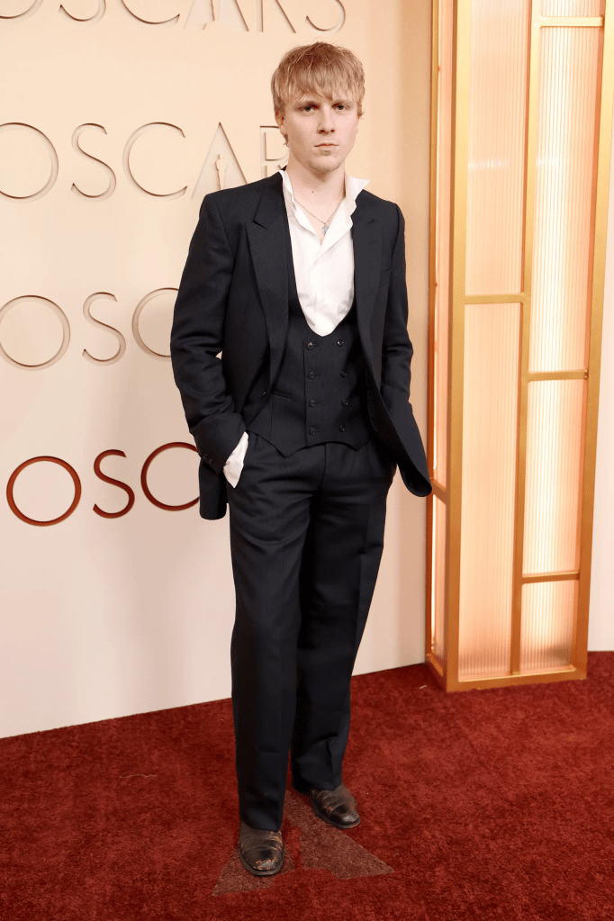This time around, I was pleasantly surprised at seeing traditional black tie done well! I saw proper dinner jackets, DB tuxes, self-tied bowties, and a handful of pumps and slippers for good measure. Some may call these outfits boring or say that the other, more “interesting” fits are more deserving of discussion, but I found them definitely an improvement from other Oscars fits I’ve seen. Just compare Will Arnett’s attire this year to what he wore in 2024! Perhaps stylists are finally drawing inspiration from classic menswear sources! It’s just nice to see evening wear played straight, especially because “black tie” now means “literally wear a black necktie” instead of, well, evening wear.